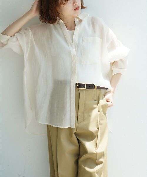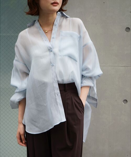 軽やかなシアー素材に、上品なとろみ感をプラスした一枚。