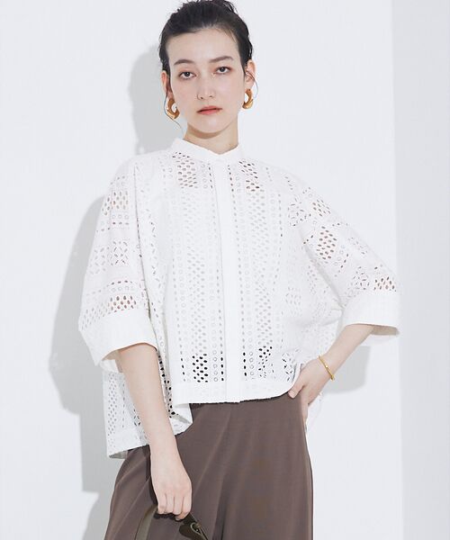 ポリエステル混の軽やかな素材感で、カジュアルにも上品にも着こなせる。