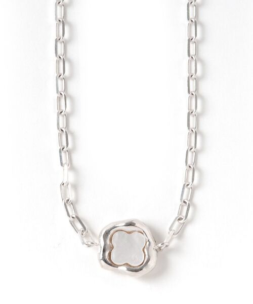 花型にカットしたパーツとシルバーパーツの融合が愛らしいデザインに。