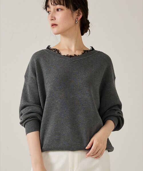 ● お届け予定日:12月中旬頃*Detail*スムース編みで程よい肉感があり、長いシーズン着用可能です。襟ぐりには繊細なレースを施し、さりげない華やかさをプラス。オーバーサイズでリラックス感と抜け感を演出しています。*Coordinate*フレアパンツ(32510050017)やデニムと合わせてバランスよく着こなせます。ジャケットやカーディガンを羽織ればきちんと感もプラス。シンプルなアクセやバッグで上品さを引き立て、パンツスタイルを楽しめます。