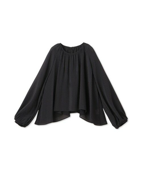 分量のあるたっぷりスリーブに続く身頃は、幅のあるワイドなボクシーフォルムでセンターからサイドにかけて弧を描くように流れ落ちる動きのあるデザインです。