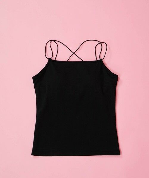 ダブルバッククロスのナローストラップデザインのカップ付きキャミソールは使い勝手の良いオフホワイトとブラックの2色展開です。