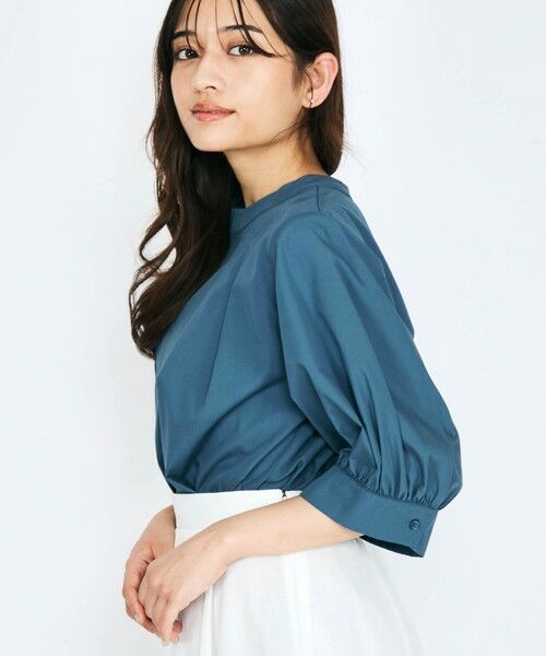 高密度に織り上げたハリ感が特徴のシワになりにくいテキスタイルを使用したパフスリーブブラウスです。