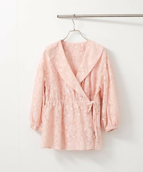 フラワーモチーフをかたどったレースを使用したコットンタッチのカシュクールブラウスは、