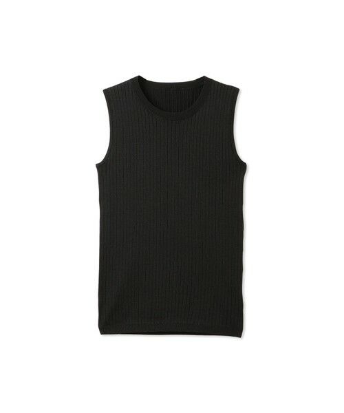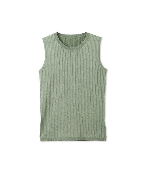 微光沢感のある糸を使用したノースリーブニットトップスです。