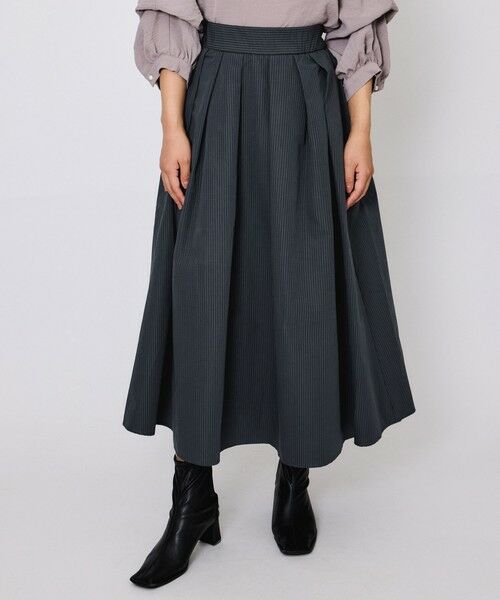 フロントはフラットに織り込まれたプリーツデザイン、バックスタイルはヒップの丸みをふんわり演出するギャザーデザインになっています。