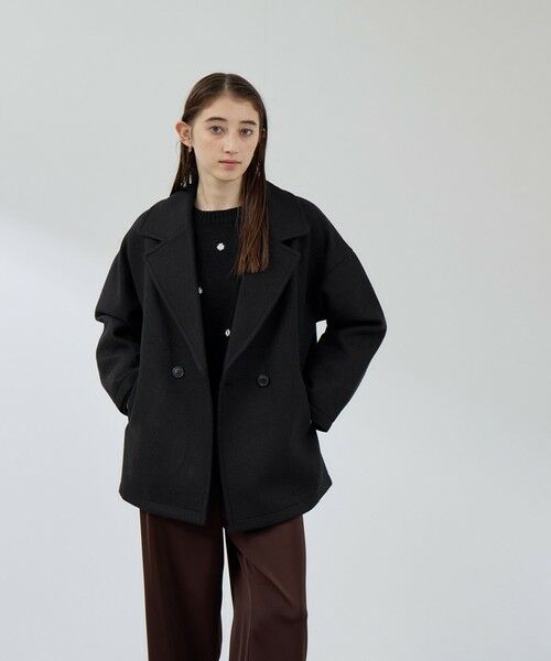 スカートスタイルにもパンツスタイルにも着合わせしやすいPコートデザインです。
