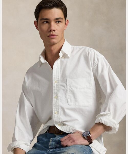 Ralph Laurenの初期のデザインに登場して以来、Poloルックの重要な柱としての地位を築いてきたオックスフォードシャツ。企業秘密のウォッシュ加工を施した素材で、一目でわかる個性、着心地のよさ、ヘザー編みの柔らかさを実現。その製法は非常にユニークで、30年以上も金庫に保管されてきたもの。プレップスクールから得たインスピレーションを彷彿とさせるディテールに加え、いわゆる完璧なシワ感を生み出すリラックスした雰囲気を演出。現在もラルフ