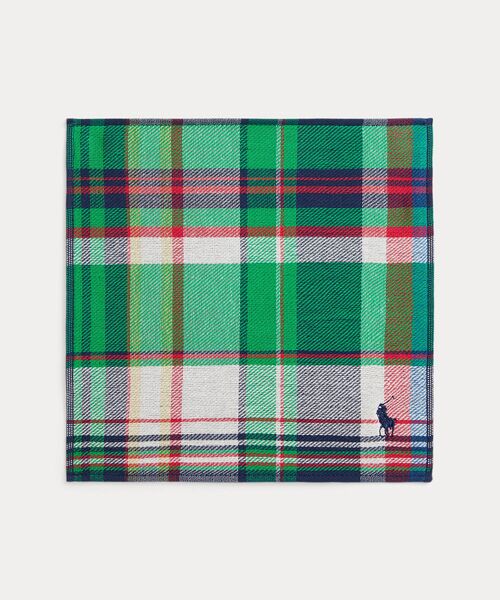 片面を織り地のチェック柄で、もう片面を無地のテリーでデザインし、シグネチャーのポニー刺繍で仕上げたコットンハンカチーフ・右下隅にシグネチャーのポニー刺繍※商品の色味は、光のあたり具合など諸条件により色感が多少異なって見える場合がございますので予めご了承下さい。※注意:柄の配置は、商品によって異なります。