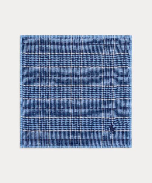 柔らかなコットンテリーのハンカチーフ。片面にチェック柄、もう片面は無地のデザイン。隅にあしらったシグネチャーのポニー刺繍でアクセントをプラス。