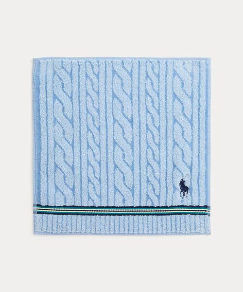 柔らかなコットンテリーを使用したハンドタオル。ヘムの上にストライプのトリムをあしらった、質感のあるケーブルモチーフのデザインが特徴。右下隅に配した緻密なポニー刺繍がアクセントを添え、シグネチャーの仕上がりを演出。・ケーブルモチーフ / ヘムにストライプのトリム・下隅にシグネチャーのポニー刺繍※商品の色味は、光のあたり具合など諸条件により色感が多少異なって見える場合がございますので予めご了承下さい。※注意:柄の配置は、商品によって異なります。