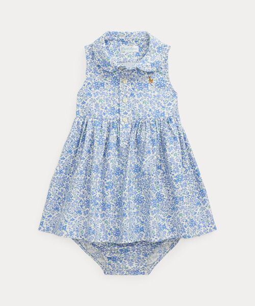 エンパイアウエストのシルエット、ピーターパンカラー、チャーミングなフローラルプリントをデザインに取り入れたコットン オックスフォードのドレス。