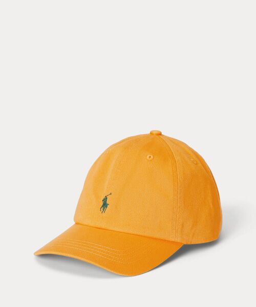 定番のキャップ。エンザイムウォッシュを施し、使い込んだ風合いを演出した柔らかいコットンチノを使用したアイテム。・あらかじめカーブさせたシーム入りのつば・6枚パネル縫製 / アイレット刺繍・フロント中央にシグネチャーのポニー刺繍・背面にPoloの刺繍・背面にスライダーバックル / 内側にスウェットバンド