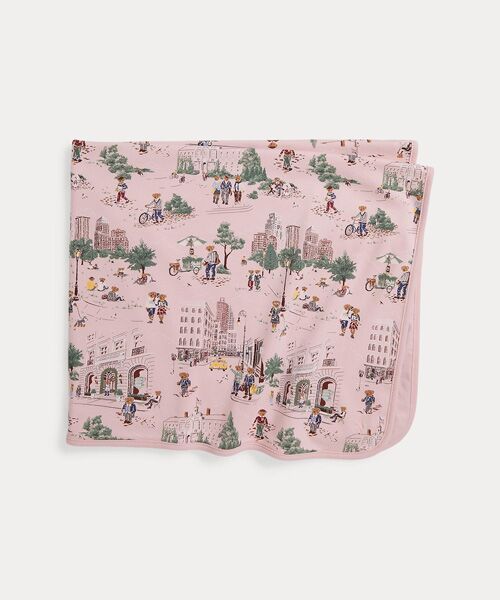 この上なく柔らかなコットンインターロックに、ニューヨークのアイコニックなマディソンアベニュー周辺の観光を楽しみながら、Ralphs Coffeeにも立ち寄るPoloベアの可愛らしいモチーフを組み合わせたブランケット。