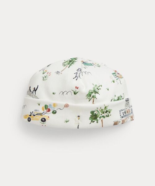 著名な水彩画家であるレイリー・シーヒーとのコラボレーションにより生まれたコットン インターロック ビーニーが、限定版カプセルとして登場。昔ながらの子供向けの本のイラストと、1980年代、1990年代、2000年代初頭のアーカイブのRalph Laurenのアイテムからインスパイアされた、このコレクションならではの遊び心たっぷりのモチーフが特徴。