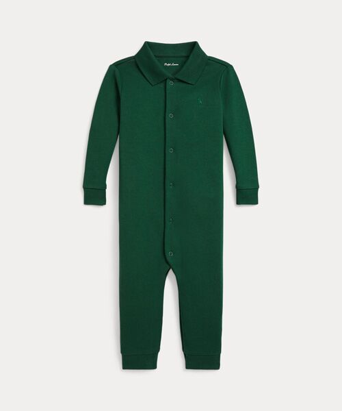 リュクスなコットンインターロックを使用し、最高にソフトな仕上がりを実現したポロワンピース・左胸にシグネチャーのポニー刺繍・リブのポロカラー、スナップ付き前立て・長袖、リブカフス・裾に隠しリングスナップ・リブの裾開き