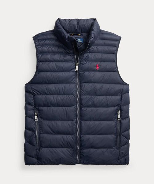 着回しの効くP-Layerシステムのひとつであるユニセックスベスト。季節の変わり目でもPOLO RALPH LAUREN らしいスタイルで暖かくカスタマイズできるアイテム。単独で着用することも、ジッパーでP-Layer 1アイテム(別売り)の中に重ね着して断熱効果を高めることも可能。水をはじきやすい生地とダウン代替素材の中綿を採用。