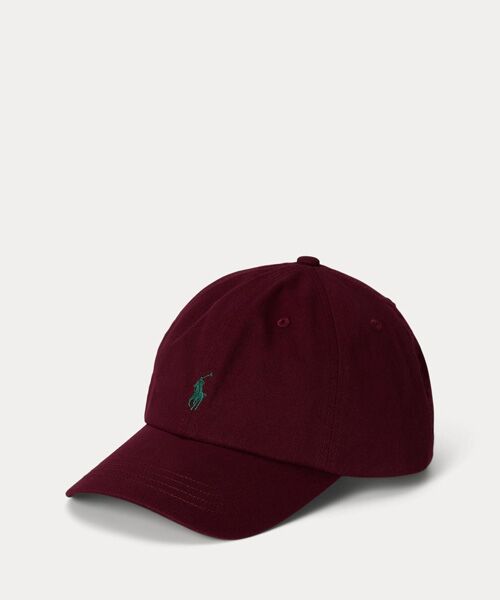 あらかじめカーブさせたつば、ウォッシュ加工のコットンツイルで、はじめから長年愛用したような風合いに仕上げたボールキャップ・あらかじめカーブさせたシーム入りのつば・6枚パネル構造 / アイレット刺繍・フロント中央にシグネチャーのポニー刺繍 / 背面にPoloの刺繍・内側にスウェットバンド / 背面にスライダーバックル