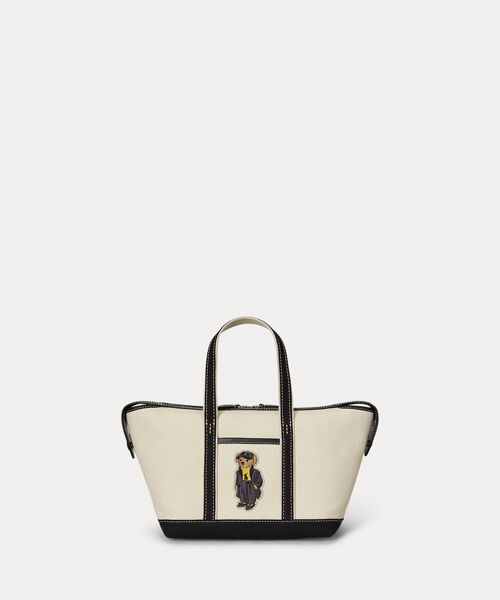 Poloベアが特徴的なフェルトの刺繍パッチで遊び心たっぷりのアクセントをプラスしたミニショッパートート。長持ちしやすいコットンキャンバスと、バーニッシュ仕上げのフルグレインレザーのトリムで仕立てたアイテム。2ウェイのトップジップ開閉式という、配慮の行き届いたデザインが特徴的なクラシックなシルエット。取り外し可能なクロスボティストラップ付き