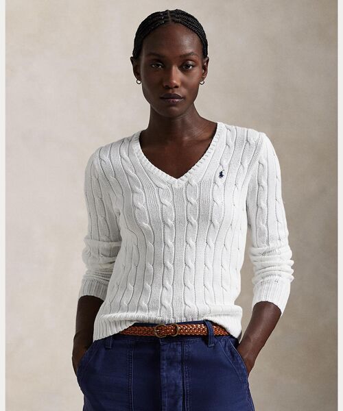 柔らかな手触りのクラシックなVネックセーター。ケーブルニット構造とスリムフィットのシルエットが際立つアイテム。胸のポニー刺繍でシグネチャーの仕上がりをプラス。・スリムフィット / 腰丈・リブニットのVネック・長袖、リブニットのカフス / リブニットの裾 / 左胸にシグネチャーのポニー刺繍・モデル身長178cm、着用サイズS※商品の色味は、光のあたり具合など諸条件により色感が多少異なって見える場合がございますので予めご了承下さい。