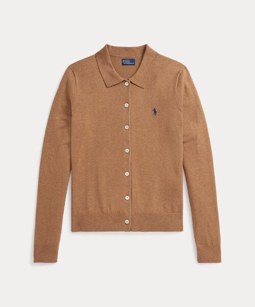 クラシックなポロカラーが特徴的な薄手のボタン付きカーディガン。胸にあしらったシグネチャーのポニー刺繍でアクセントをプラス。