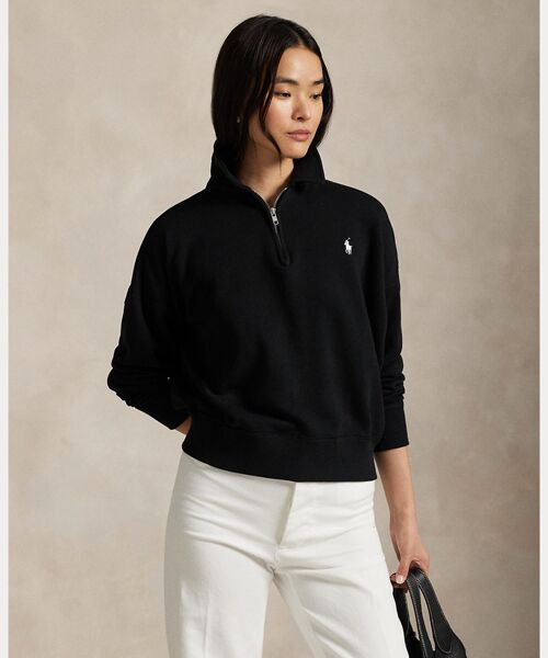 ポニー刺繍でシグネチャーの仕上がりをプラスしたクォータージップのプルオーバー。コームドコットンとリングスパンコットンを使用した薄手のフリースで仕立て、この上なく柔らかな手触りを実現