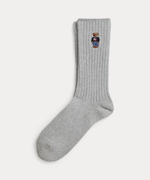 アイコンを身にまとうアイコン。Ralph Laurenのフラッグセーターを身に着けたPoloベアをあしらい、しっかりとしたコットン混紡糸を編み上げたクラシックなクルーソックス・リブカフス・左右のソックスの外側にPoloベアの刺繍。※商品の色味は、光のあたり具合など諸条件により色感が多少異なって見える場合がございますので予めご了承下さい。