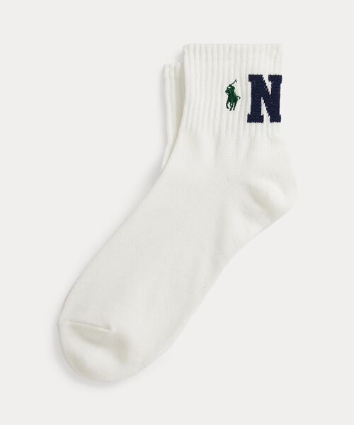 創業者の故郷に敬意を表し、レターマンスタイルのNYのグラフィックとシグネチャーのポニー刺繍を組み合わせたクォーターレングスのコットン混紡ソックス・リブカフス・左右のソックスのカフの後ろにNYの編み込み / 左右のソックスの外側にシグネチャーのポニー刺繍。※商品の色味は、光のあたり具合など諸条件により色感が多少異なって見える場合がございますので予めご了承下さい。