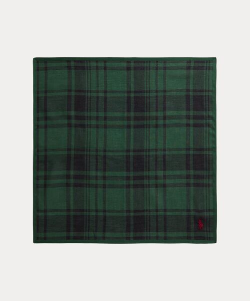 糸染めコットンで仕立てたハンカチーフ。カラフルなチェック柄とシグネチャーのポニー刺繍が特徴・右下隅にシグネチャーのポニー刺繍※注意:柄の配置は、商品によって異なります。