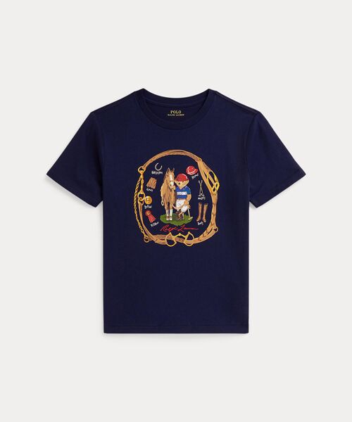 自分の名前の由来となったポロ競技のユニフォームをまとったアイコニックなPoloベア、馬、定番のエクエステリアン アイテムをあしらったTシャツ。・クルーネック・半袖・フロント中央にPoloベア、馬、エクエステリアン風グラフィック、Ralph Laurenの文字のプリント※商品の色味は、光のあたり具合など諸条件により色感が多少異なって見える場合がございますので予めご了承下さい。