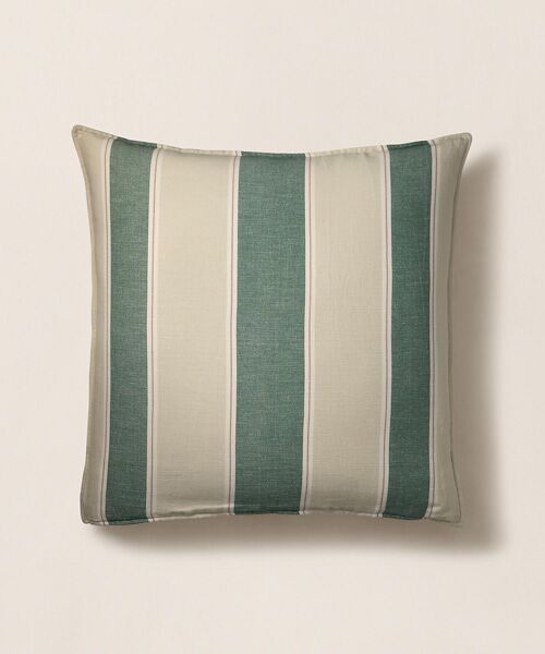 リネン混紡で仕立てたRalph LaurenのCarlinピローシャム。わずかに光沢を出すよう織り上げ、 ストライプモチーフ全体にさりげない色の濃淡を表現