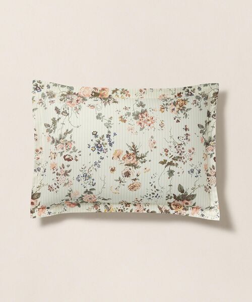 クラシックな英国風フローラルと、メンズウェア風のチョークストライプを融合したトンプソンピローシャム。長く愛されているRalph Laurenの2つのモチーフを組み合わせ、掛け寝具にシグネチャースタイルをプラス。コットンパーケールの織り地を使用してポルトガルで仕立て、なめらかな手触りと仕立てのドレープを生み出したアイテム。