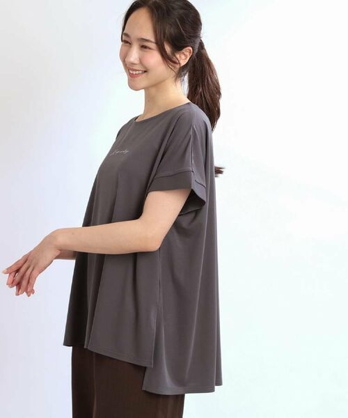 キレイめ素材でおつくりしたチュニック丈Tシャツ。