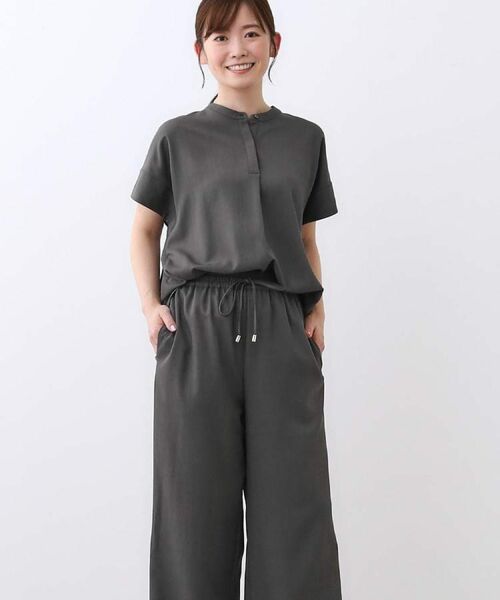 コンパクトな比翼デザインのトップスは、前後差をつけることで、セットのパンツを合わせた際にもバランス良く見えるシルエットでお召しいただけます。