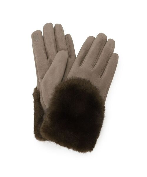 【デザイン】優しく手を包み込んでくれるようななめらかなスエード調素材とリッチなフェイクファーをたっぷりと使用したグローブ。この異素材コンビネーションが、冬の装いに奥行きと温もりを与えてくれます。着けたままでもスマホの操作ができる嬉しいポイントも◎。※こちらの商品は付けたままでもスマートフォンを操作して頂けます。機種により作動しない場合がございますので、予めご了承ください。※照明の関係により、実際よりも色味が違って見える場合があります。また、パソコン・スマートフォンなどの環境により、若干製品と画像のカラーが異なる場合もございます。本商品は、ご注文確定後に取り寄せにてお客様への出荷手配をさせていただきますので、お届けまでに7~10日前後かかる場合がございます。また、商品は他社サイトと在庫を共有しているため、ご注文いただいた商品が欠品となり、キャンセルとなる場合がございます。
