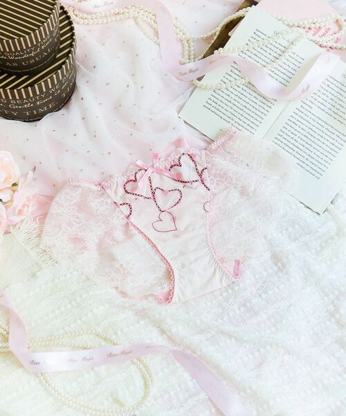 大小様々なハートをふんだんに刺しゅうしたレースは、ラメ糸をあしらったチェーン風のハートがアクセントとなり、バレンタインの心ときめくとびきりキュートなデザインに。レースにはさりげなく「Sweet day」の文字を刺しゅうして、バレンタインだけの遊び心もプラスしています。