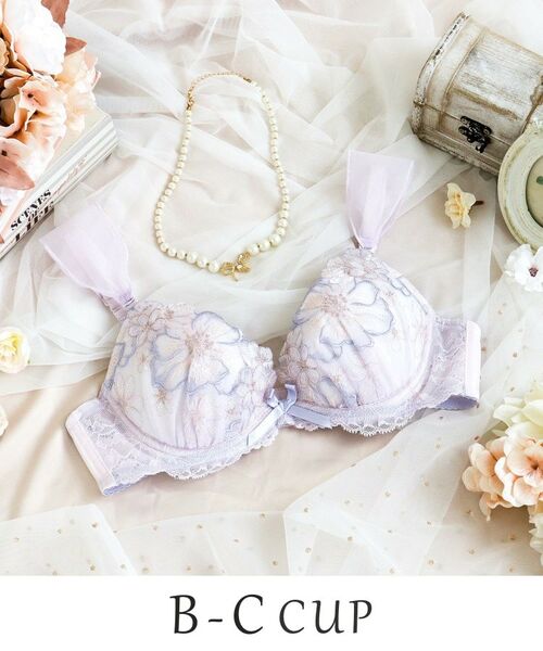 アネモネのお花を大胆に刺繍したレースは、存在感あふれる印象の中に繊細なステッチをあしらうことで、可愛らしくガーリーに仕上がりました。その周りにはラメ糸をたっぷりとほどこした小さなお花のアップリケを重ねて、奥行き感をプラス。様々なお花がレース全体に咲きほこっているような、華やかさを演出しています。ストラップにはメロウ加工したソフトチュールをあしらい、リサマリ初の2WAY仕様に。ふわふわとした軽やかさに思わずきゅんとする、遊び心を詰め込みました。カラーは淡いグラデーションでまとめて、チュールやアップリケのシアー感を引き立たせた、ロマンティックなコレクションです。