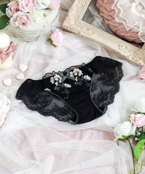 後身生地は総レースになっており、伸縮性のあるレースが肌に心地よくフィットします。足口にはゴムを使っていないので食い込まず、少しゆとりをもった履き心地です。ボトムスへもショーツラインが響きません。通気性がよく、快適にご着用いただけます。甘すぎず、大胆過ぎない特別感あふれるデザインが、ラグジュアリーな大人の雰囲気を演出します。
