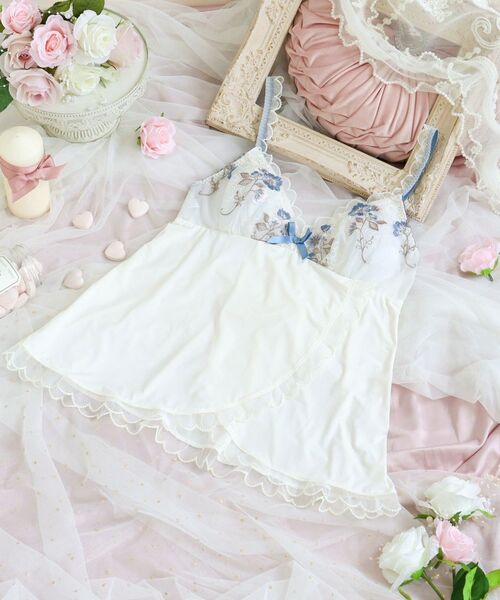 存在感のあるグラデーションのお花に、ドットアーチのチュールレースをふんだんにあしらった可憐なシリーズです。レースにはあえて目立たないカラーで線画のお花を刺繍して、上品な華やかさと奥行き感のある印象に仕上がりました。ストラップとフロントにはポイントでレースを添えて、ドットアーチの可愛らしさを十分に引き立てています。身生地はアシンメトリーにクロスしたラウンドカットで、ふんわり揺れる女の子らしい華やかさを演出。色展開はガーリーなレッドから、爽やかなブルー、アウターライクなブラックまで、カラーによって違った表情をお楽しみいただけます。