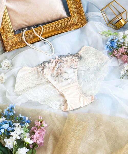 後身生地は総レースになっており、伸縮性のあるレースが肌に心地よくフィットします。足口にはゴムを使っていないので食い込まず、少しゆとりをもった履き心地です。ボトムスへもショーツラインが響きません。通気性がよく、快適にご着用いただけます。甘すぎず、大胆過ぎない特別感溢れるデザインが、ラグジュアリーな大人の雰囲気を演出します。