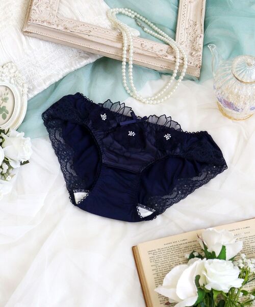 Risa Magliのサニタリーショーツは、ブラジャーとペアでデザインをお作りしています。ブルーな日でもコーディネートを楽しんで憂鬱な気分もHAPPYに。そんな願いをこめてお届けいたします。気持ちの良い履き心地でストレスフリーにこだわりました。クロッチ部分はカサカサと音がなりにくく、汚れの落としやすい防水布を使用しております。足口にはレースを使用し、ボトムスへも響きにくくなっております。