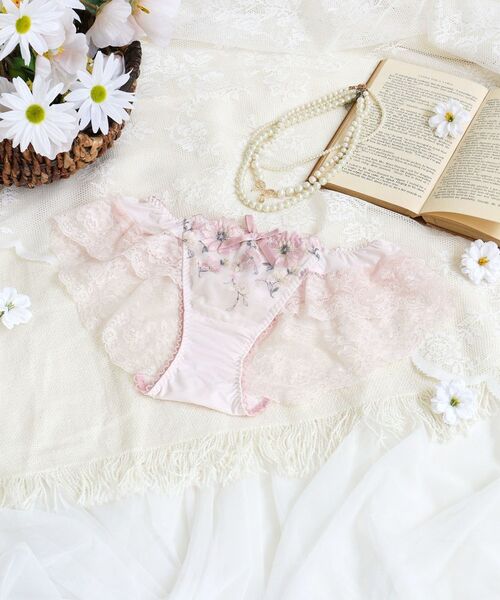 ふわりと広がるシルエットが可愛らしく、レースを贅沢にあしらった、女の子らしいデザインをお楽しみいただけます。足のつけ根の締め付け感がなく、楽な履き心地です。ウエストとフレアのメリハリでスタイルUP効果も。スカートやワイドパンツ等と合わせご着用いただくのがおすすめです。