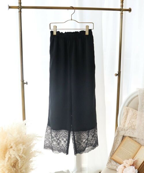 あたたかみのあるサテンクレープを使用した、リサマリのルームコレクションです。裾には繊細な花柄レースをふんだんにあしらい、さりげない肌の透け感が大人の気品あふれる、どこから見ても美しいシルエットに。ウエスト部分はギャザーを寄せてフリル調にすることで、リサマリらしい可愛らしさをプラスしました。カラーリングは季節感のあるくすみ系ピンクと、デイリー使いしやすいブラックの2色で展開しています。高級感のあるレーシーなディテールと柄行きを活かしたワントーンでまとめることで、ワンランク上の印象に仕上がりました。お揃いのトップス、カーディガンとのコーディネートを楽しめる、おうちでのリラックスタイムにおすすめしたいアイテムです。