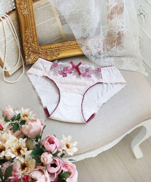 Risa Magliのサニタリーショーツは、ブラジャーとペアでデザインをお作りしています。ブルーな日でもコーディネートを楽しんで憂鬱な気分もHAPPYに。そんな願いをこめてお届けいたします。レーヨン素材を使用し、気持ちの良い履き心地でストレスフリーにこだわりました。クロッチ部分はカサカサと音がなりにくく、汚れの落としやすい防水布を使用しております。足口にはレースを使用し、ボトムスへも響きにくくなっております。