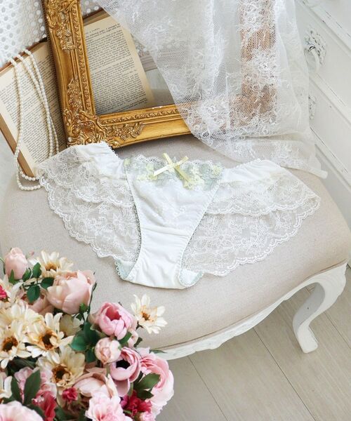 ふわりと広がるシルエットが可愛らしく、レースを贅沢にあしらった、女の子らしいデザインをお楽しみいただけます。足のつけ根の締め付け感がなく、楽な履き心地です。ウエストとフレアのメリハリでスタイルUP効果も。スカートやワイドパンツ等と合わせご着用いただくのがおすすめです。