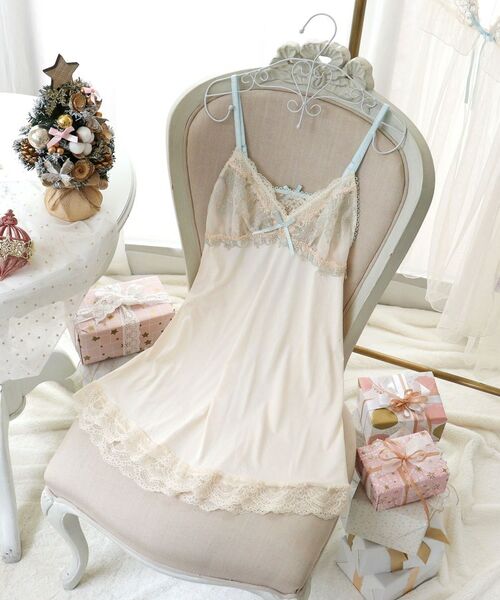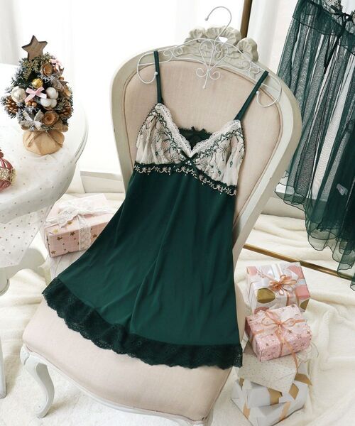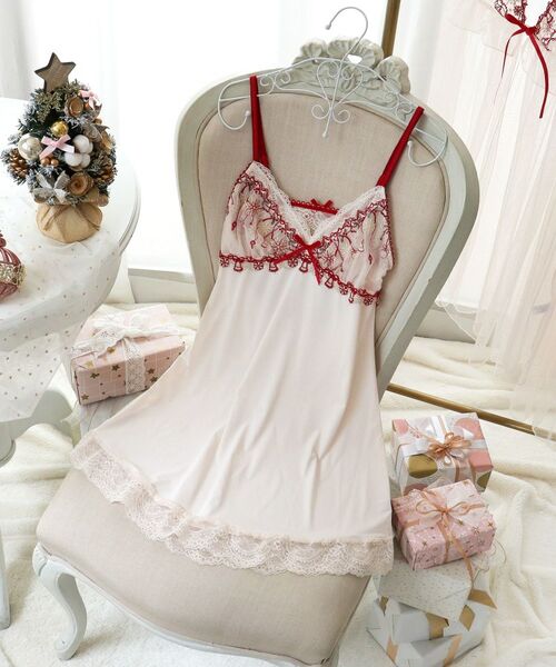 キラキラと揺れるオーナメントをモチーフにした、リサマリのクリスマスコレクションです。レースには窓辺に飾られているリボンやモミの木、ベルや鈴をふんだんに刺繍して、オーナメントがゆらゆらと揺れている様子を可愛らしく表現。窓の外に降り積もる雪の結晶を、たっぷりのラメ糸で豪華にあしらいました。カップ上辺はシンプルなレースで2段になるよう切り替えて、刺繍1つ1つを引き立たせるナチュラルな上品さを演出。バスト下には存在感のあるケミカルナローレースを添えて、ホリデー気分高まる特別感をプラスしています。バックスタイルは大胆なラウンドカットで、エレガントな印象に。ふんだんにストレッチレースをあしらい、スリップだけの華やかなスタイルをお楽しみいただけます。年に1度のクリスマスシーズンは、Risa Magliのランジェリーでヒロインに。心ときめく素敵なひと時をお過ごしください。