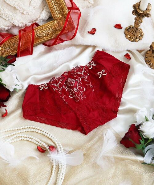 煌びやかな宮殿の装飾をイメージした、リサマリのクリスマスコレクションです。レースにはシャンデリアをモチーフにした形や曲線をふんだんにあしらい、気品あふれるクラシカルな世界観を演出。全体に輝くラメ糸を刺繍して、繊細にステッチを変化させることで、ワントーンの中にも動きのある印象に仕上がりました。レース上辺には小さなお花をあしらい、さりげない可愛らしさを表現。リボンをモチーフにしたアップリケには、お花とリーフを組み合わせて遊び心をプラスしました。年に1度のクリスマスシーズンは、Risa Magliのランジェリーでヒロインに。ワンランク上の美しさを演出した 「Risa Magli Reine(レーヌ)」ブランドの世界観をお楽しみください。