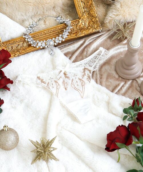 クリスマスには欠かせないスワッグや壁飾りをモチーフにした、リサマリのクリスマスコレクションです。レースには幾何学模様やサーモカットのアップリケをあしらい、華やかで奥行きのある仕上がりに。ふんだんにラメ糸を刺繍して、気品あふれる輝きと斬新なカラーリングが、エレガントな大人のクリスマスを演出します。フロント中央のリボンには揺れるラインストーンを、サイドにはアシンメトリーにリボンテープをあしらい、特別感をプラスしました。年に1度のクリスマスシーズンは、Risa Magliのランジェリーでヒロインに。ワンランク上の美しさを演出した 「Risa Magli Reine(レーヌ)」ブランドの世界観をお楽しみください。