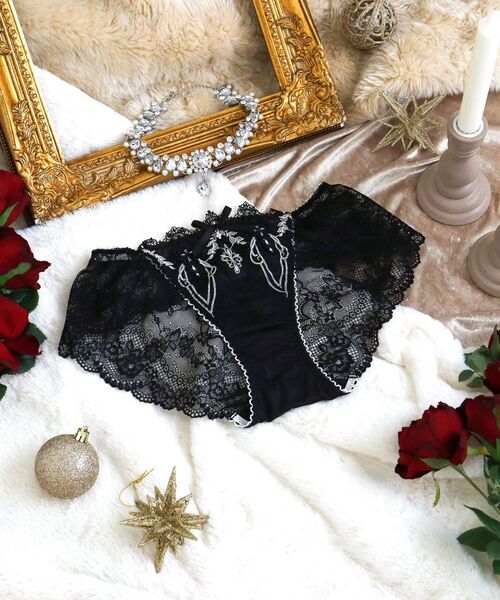 後身生地は総レースになっており、伸縮性のあるレースが肌に心地よくフィットします。足口にはゴムを使っていないので食い込まず、少しゆとりをもった履き心地です。ボトムスへもショーツラインが響きません。通気性がよく、快適にご着用いただけます。甘すぎず、大胆過ぎない特別感あふれるデザインが、ラグジュアリーな大人の雰囲気を演出します。