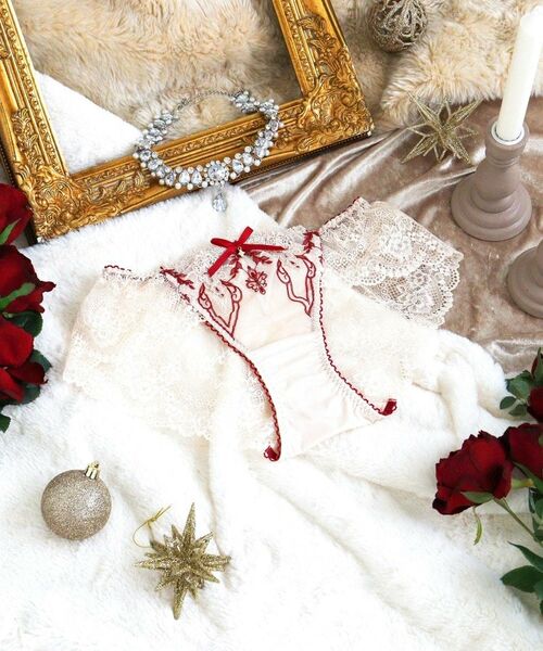クリスマスには欠かせないスワッグや壁飾りをモチーフにした、リサマリのクリスマスコレクションです。レースには幾何学模様やサーモカットのアップリケをあしらい、華やかで奥行きのある仕上がりに。ふんだんにラメ糸を刺繍して、気品あふれる輝きと斬新なカラーリングが、エレガントな大人のクリスマスを演出します。フロント中央のリボンには揺れるラインストーンをプラスしました。年に1度のクリスマスシーズンは、Risa Magliのランジェリーでヒロインに。ワンランク上の美しさを演出した 「Risa Magli Reine(レーヌ)」ブランドの世界観をお楽しみください。